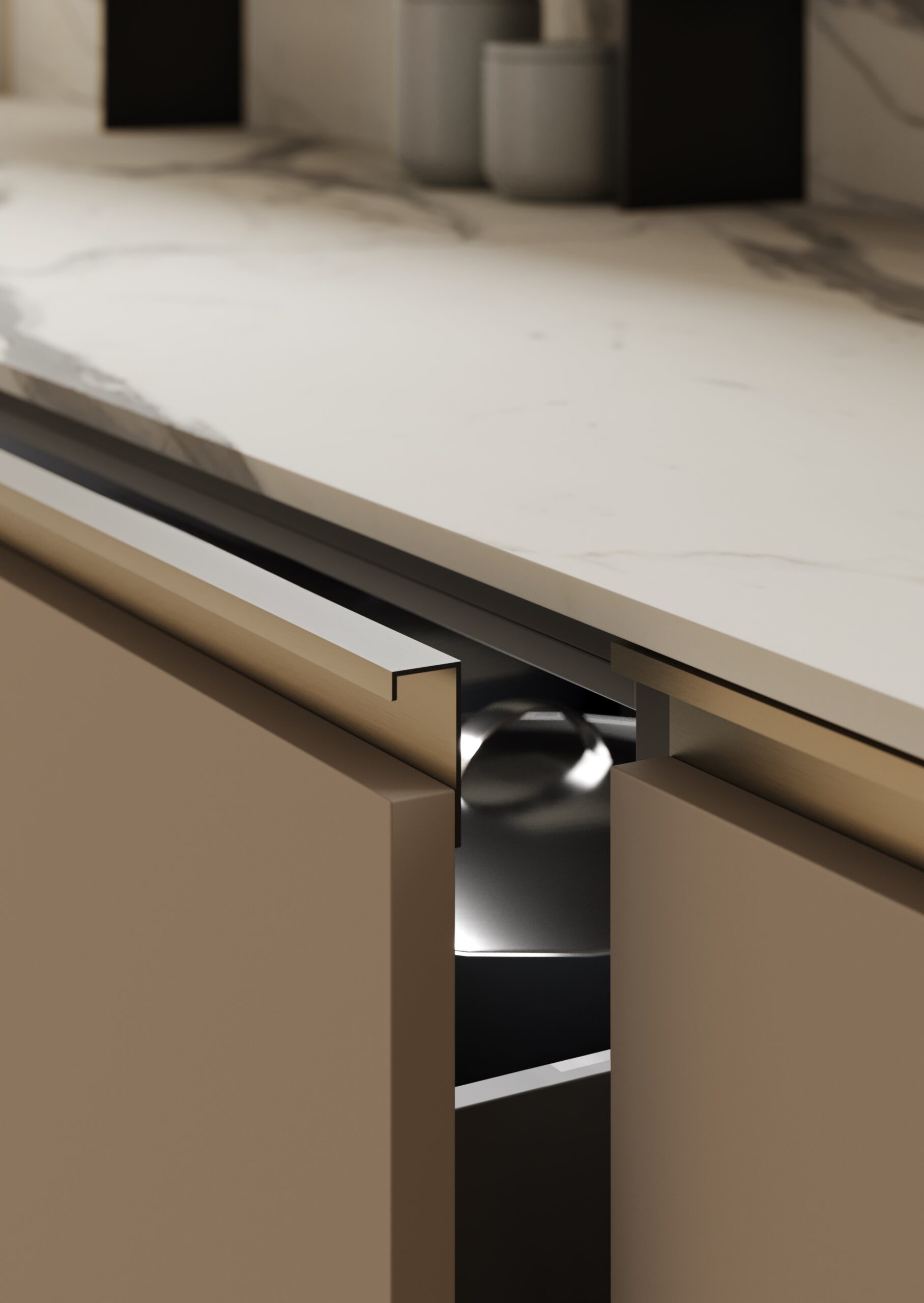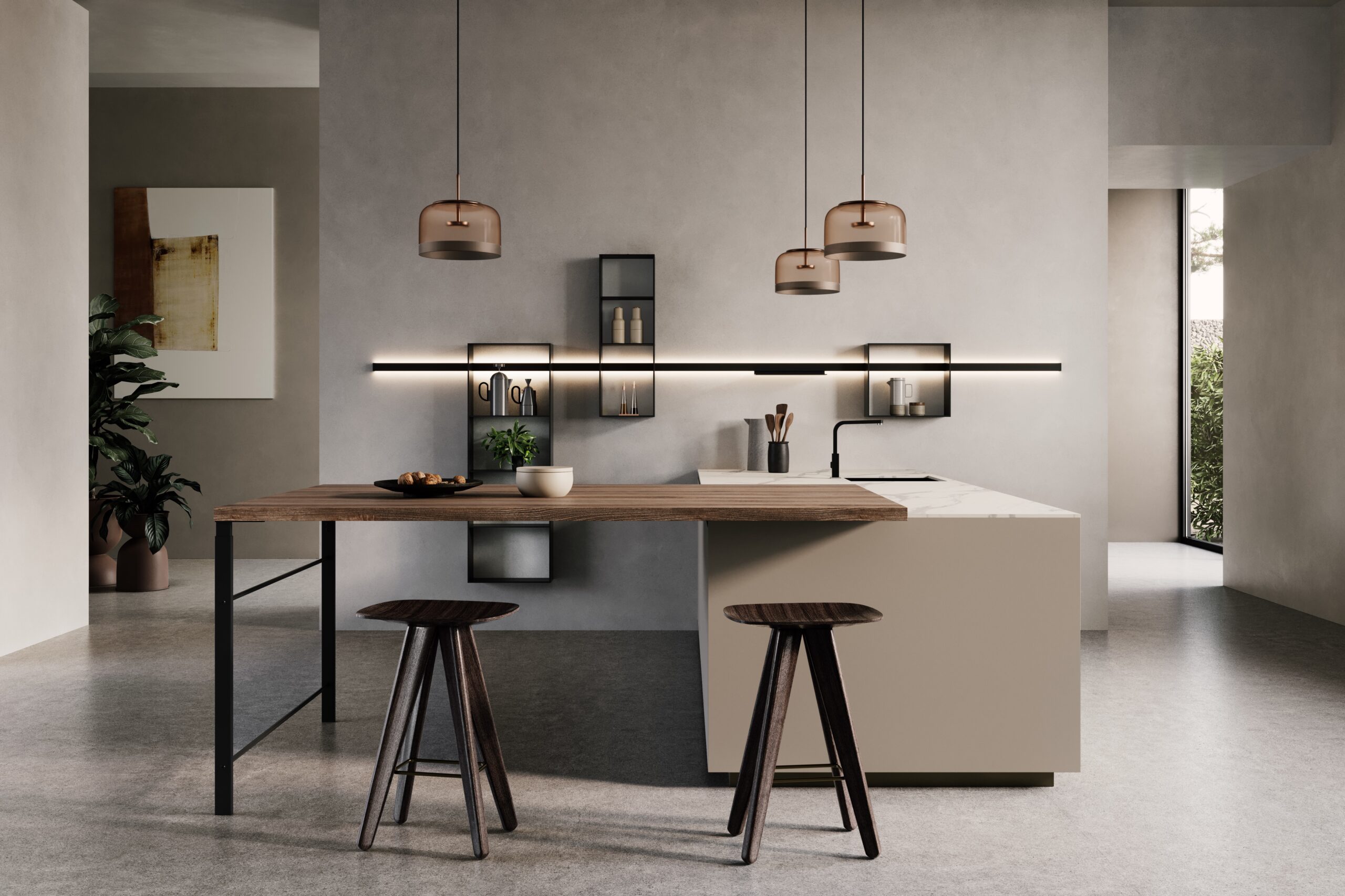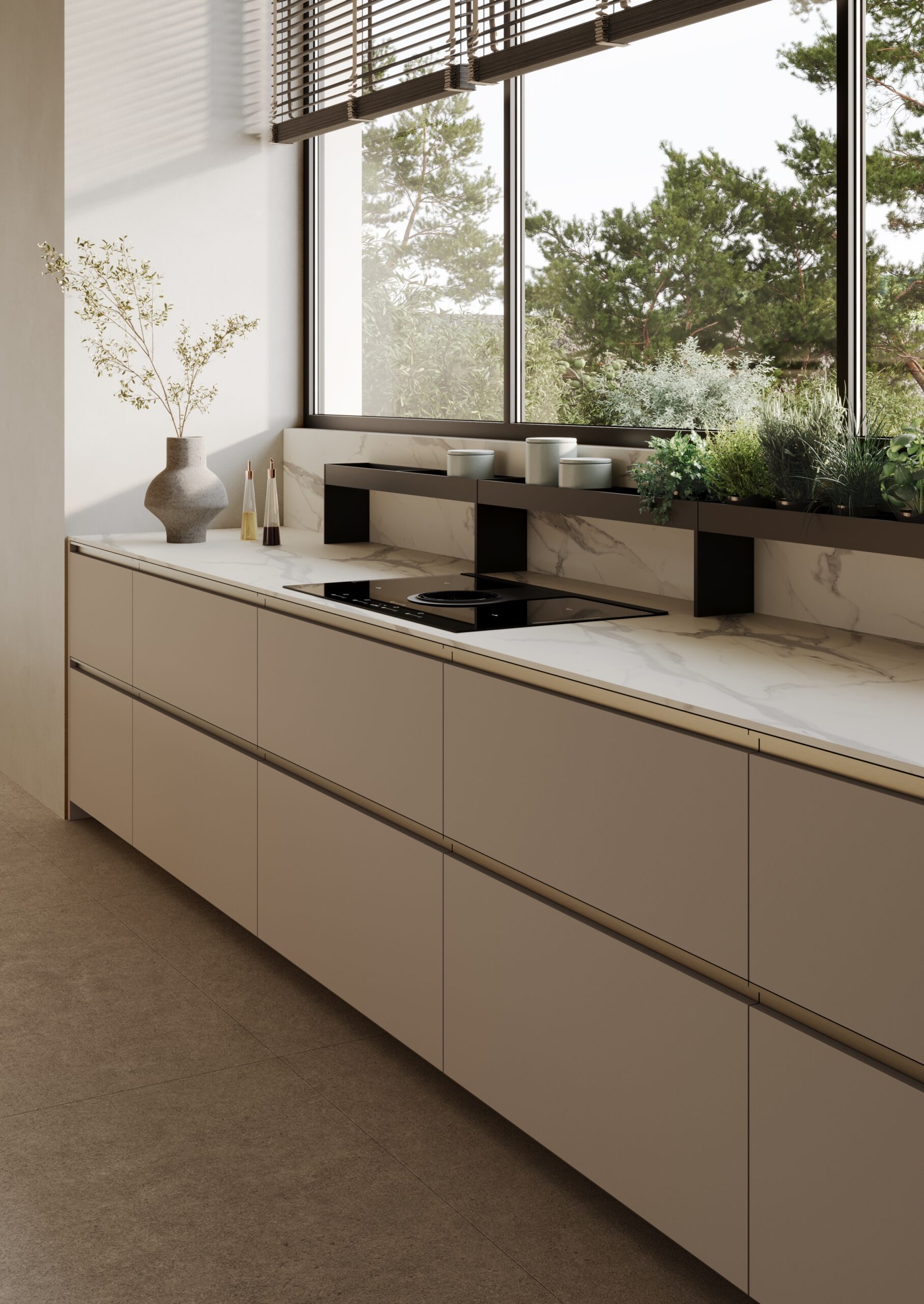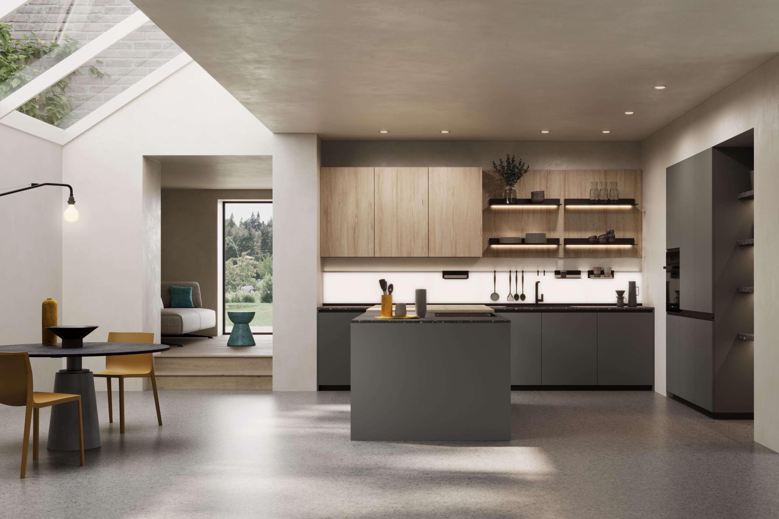 Le profil intégré est simple et jeune, ce qui rend la porte extrêmement pratique. Les contrastes des finitions permettent de donner forme à des compositions captivantes et concrètes. Des finitions fraîches et lumineuses comme la laque brillante, plus traditionnelles comme l’effet bois ou tendance comme l’effet pierre satisferont tous les goûts.